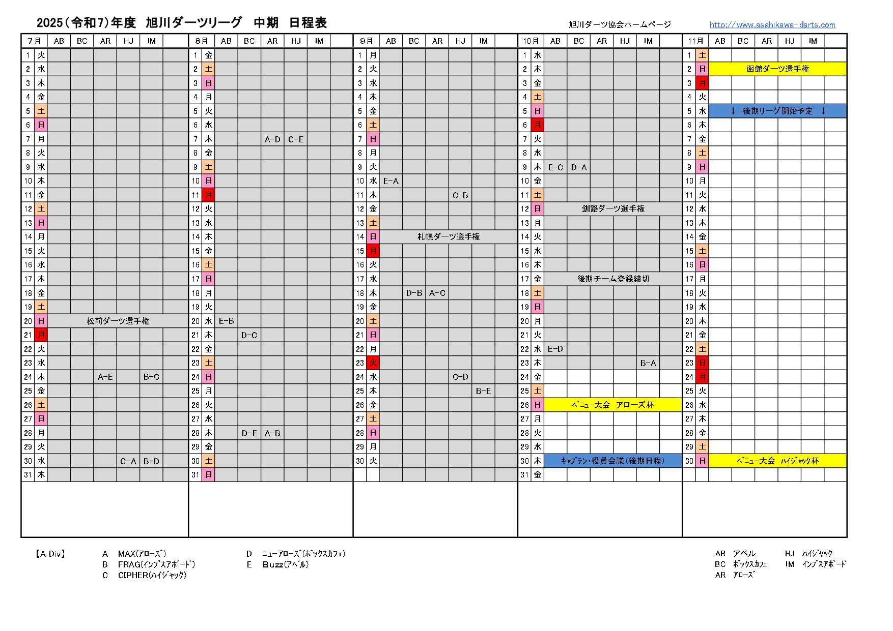 2025 前期リーグ日程表・リザルト 7.10 (全日程終了)